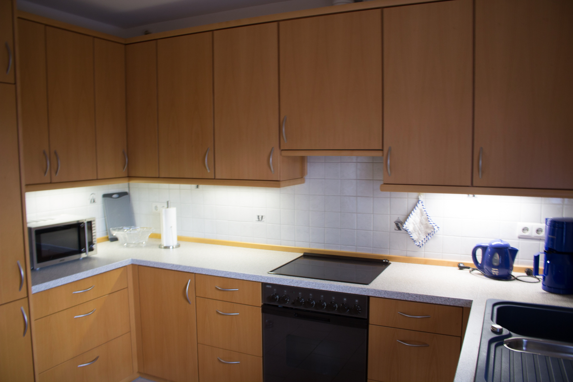 Unsere gemütliche Ferienwohnung in Kalübbe ist ca. 55m2 groß und befindet sich separat in einem Anbau. Sie verfügt über eine komplett eingerichtete Küche mit Geschirrspüler und Mikrowelle, einen Sanitärbereich mit bodenebener Dusche und WC, ein Schlafzimmer mit Doppelbett und ein Wohnzimmer mit ausziehbarer Couch, Fernseher und Stereoanlage. Die Terrasse zur Alleinnutzung lädt zum gemütlichen Verweilen oder zum Grillen ein. Die Ferienwohnung ist gedacht für 2 Personen. Es gibt die Möglichkeit im Schlafzimmer ein kleines Kinderbett dazuzustellen und im Wohnzimmer läßt sich das Sofa zu einem Bett umbauen (eine Person).